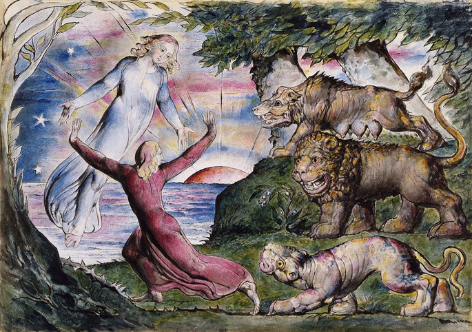 La Divina Comedia de Dante Alighieri -aunque en clave místico-cristiana y con una estructura narrativa distinta- ilustra metafóricamente el proceso de individuación de forma magistral. En las dos primeras etapas de su viaje, guiado por Virgilio, Dante es conducido por los infiernos y el purgatorio, donde conoce los males anímicos