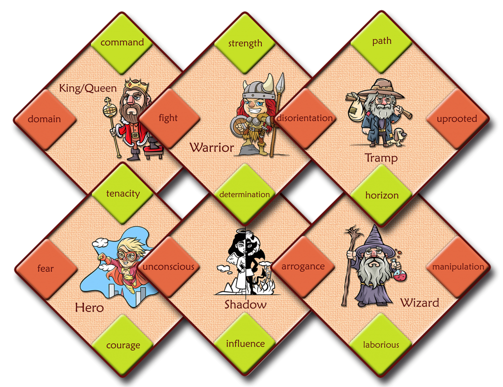 IV. Archetypal anchoring of resources: Resources are what will allow us to start our journey in a proactive way and overcome the difficulties that may appear: strong legs, boots, poles, canteen … Archetypes will allow the client to empower himself, and recognize those talents that will help him achieve his purpose.